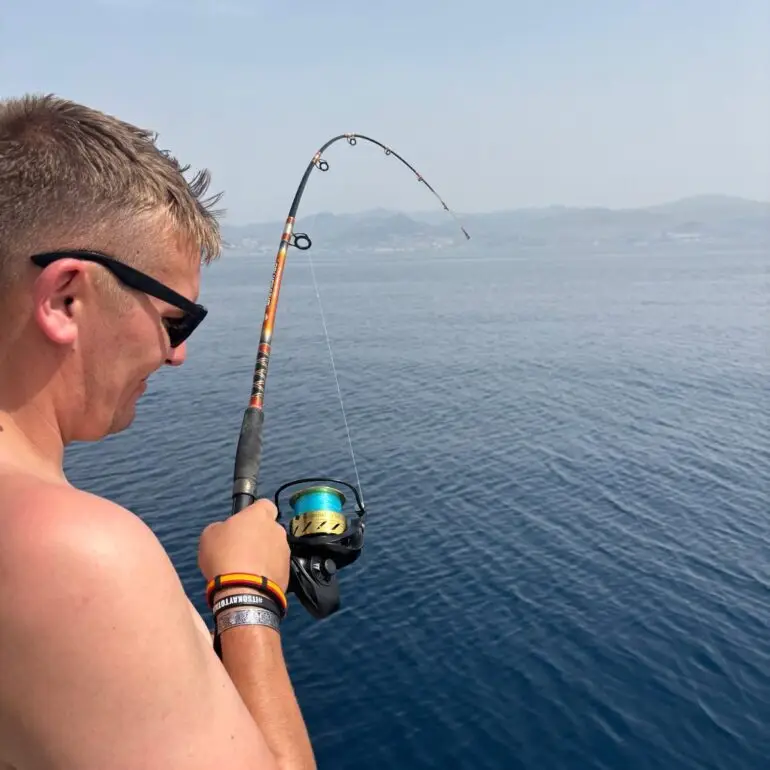 A vertical fishing method using heavy lures, ideal for jigging fishing in Marbella in deeper waters of the Costa del Sol.